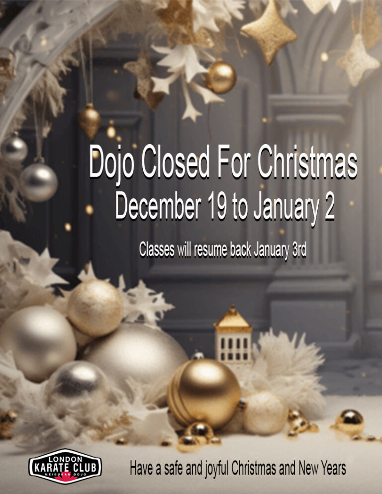 We wish everyone a Very Merry Christmas and a Happy New Year. Stay Safe and we hope that you enjoy the Holidays with Family and friends. The Dojo will be Closed From Dec 19th to Jan 2nd. We will Open on Saturday Jan 3rd. See you in the New Year !!!
