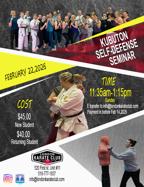 Kubuton Seminar Sunday February 22,2026 from11:35am to 1:15pm. Everyone is welcome for more information please Contact us at info@londonkarateclub.com